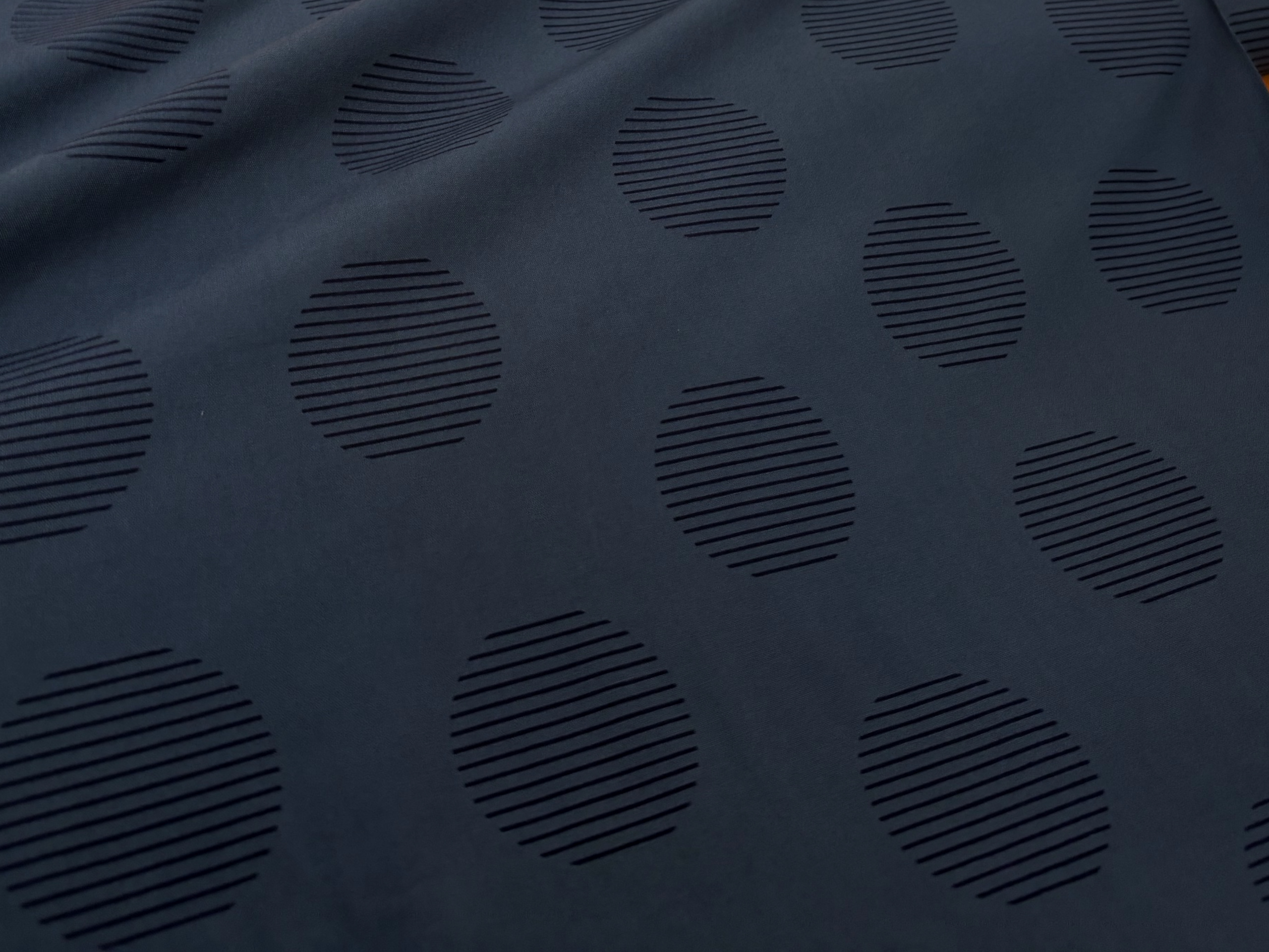 Superweich und fließend. Angenehm auf der Haut. Toller, schwerer Fall. 100% Edel-Viskose von MILK. EcoVero ist eine umweltfreundlichere Viskose vom Faserhersteller Lenzing aus Österreich. Wie alle Viskosen wird EcoVero Zellstoff aus Holz gewonnen. Lenzing EcoVero garantiert, dass dieses Holz aus kontrollierten und zertifizierten Quellen stammt.Grafisches Muster in sehr dunklem Blau. Gestrichelter Punkt (6 cm). 140 cm breit, 160 g/m².