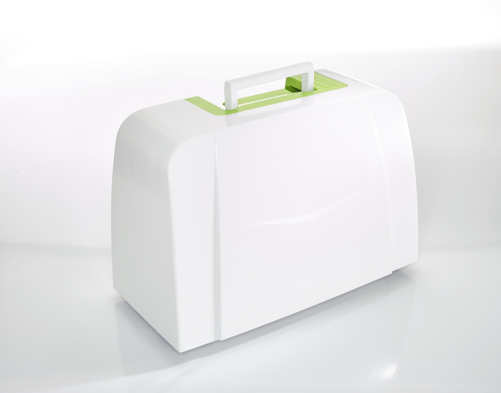 Stabile Kunststoff-Kofferhaube - Im passenden Design. Schützt die Nähmaschine vor Staub und Schmutz. Komfortabel zu transportieren.