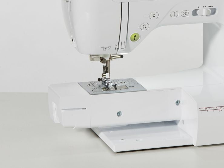 Helle LED-Beleuchtung über dem Nähfuß.