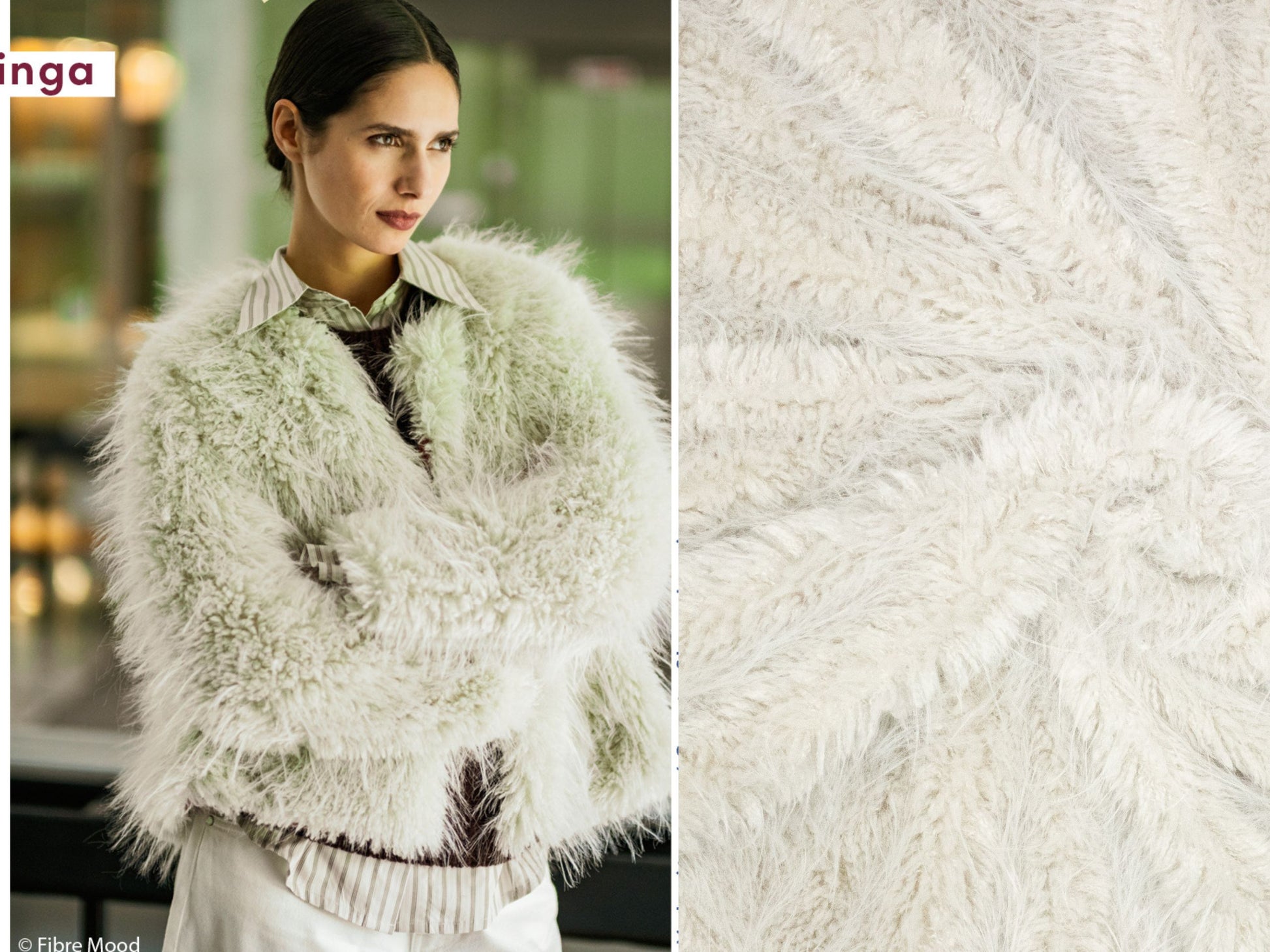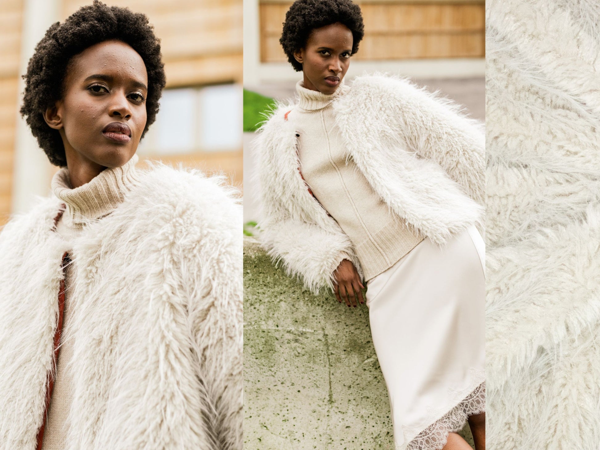 Superstylish! Kuscheliges Kunstfell mit Fransen in Natur. Für Jacken, Mäntel, Kissen, Krägen und vieles mehr. Aus der Fibre Mood Collection. Tipp: Fibre Mood Nähmagazin No. 36, Jacke: Schnitt INGA, Kragen: Schnitt ESME, 100% Polyester, 160 cm breit, 500 g/m².