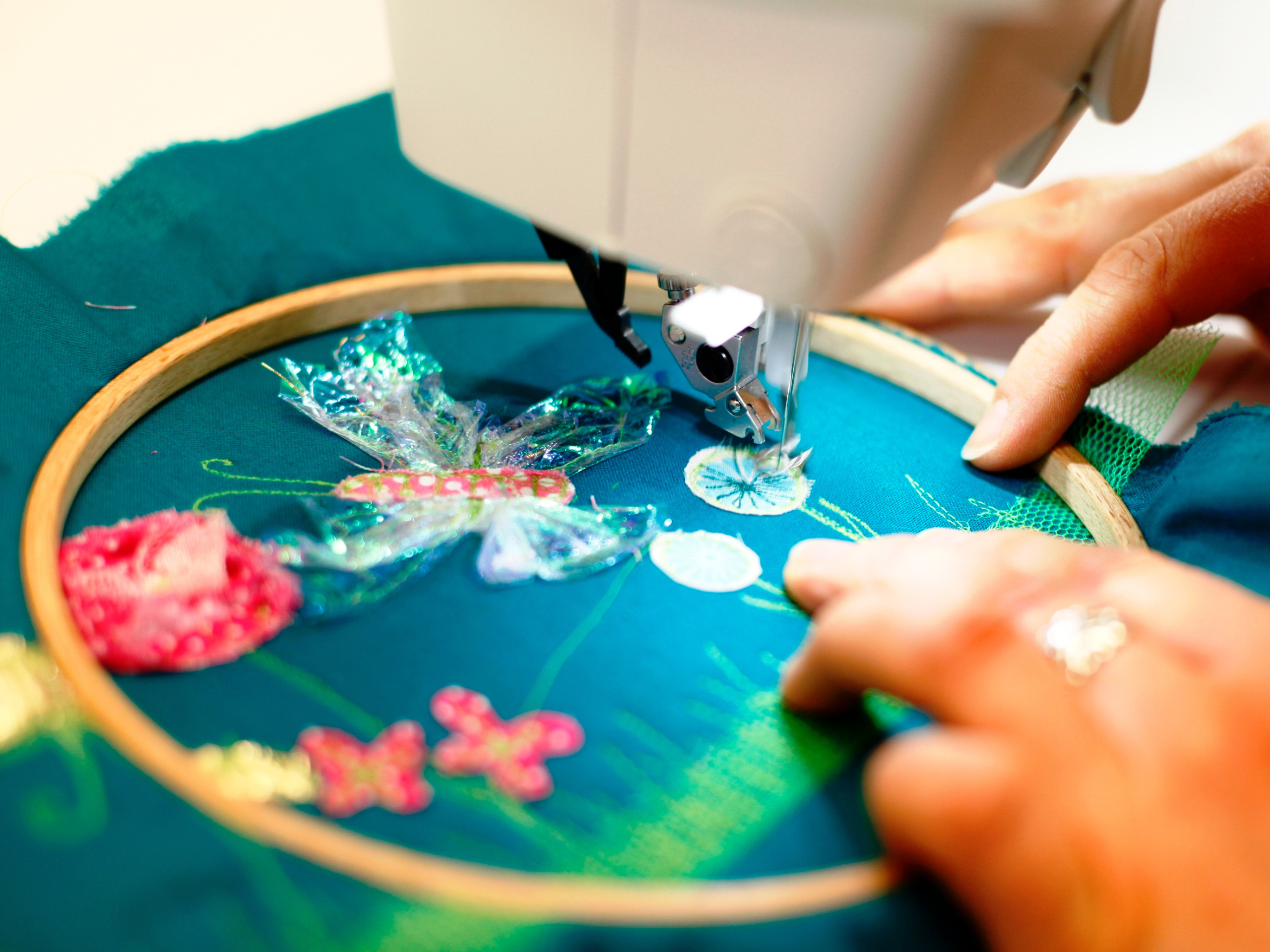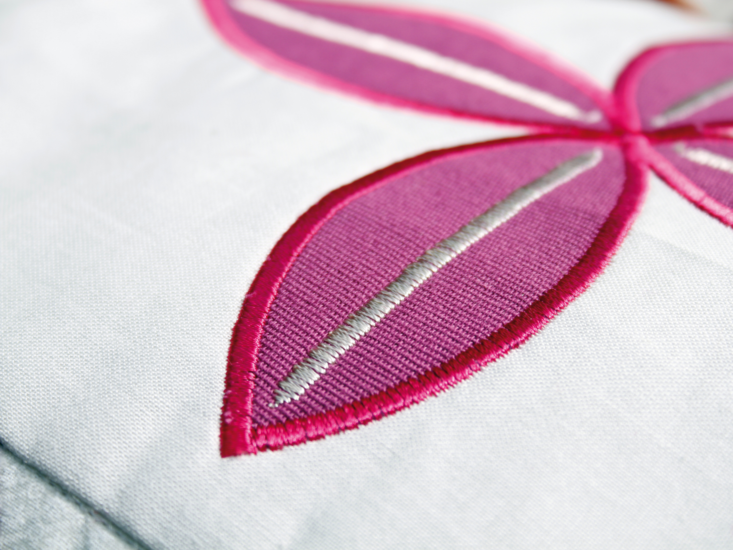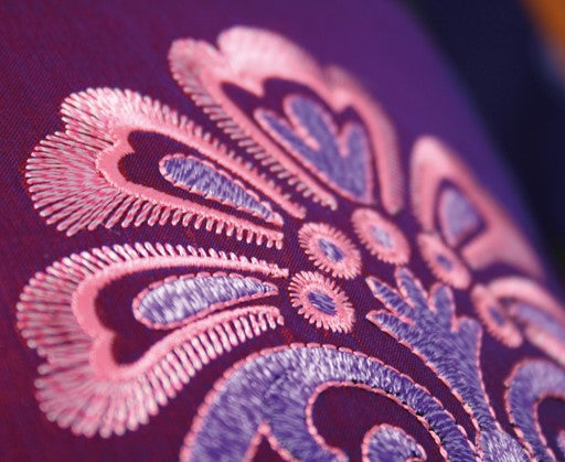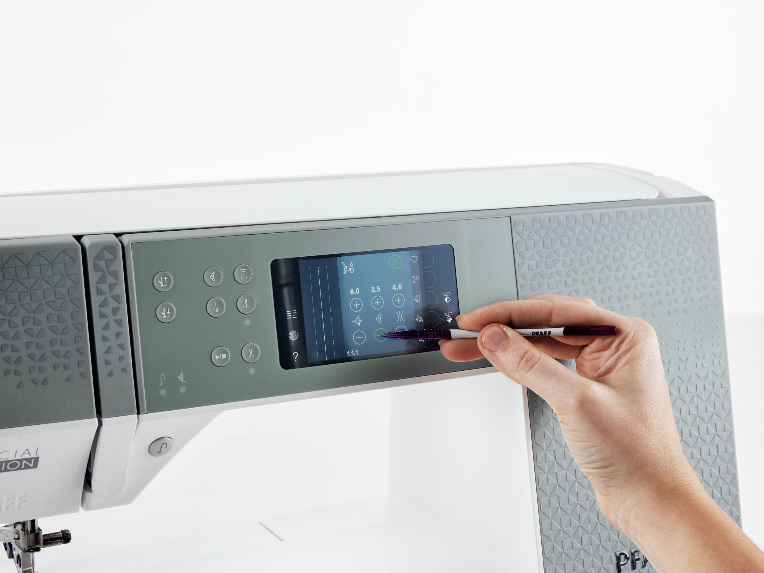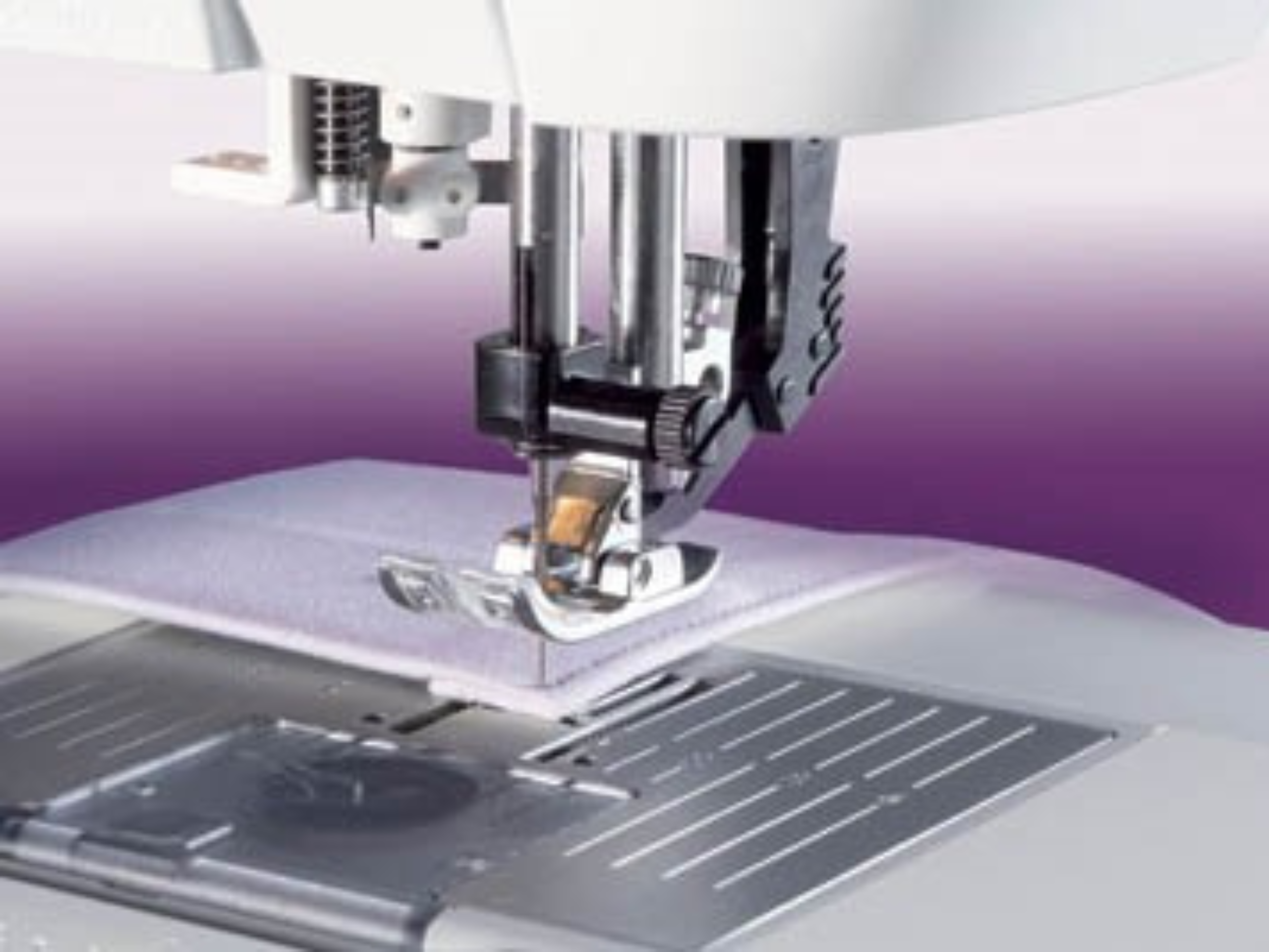 250 mm rechts der Nadel. Perfekt zum Verarbeiten von großem Stoffvolumen.