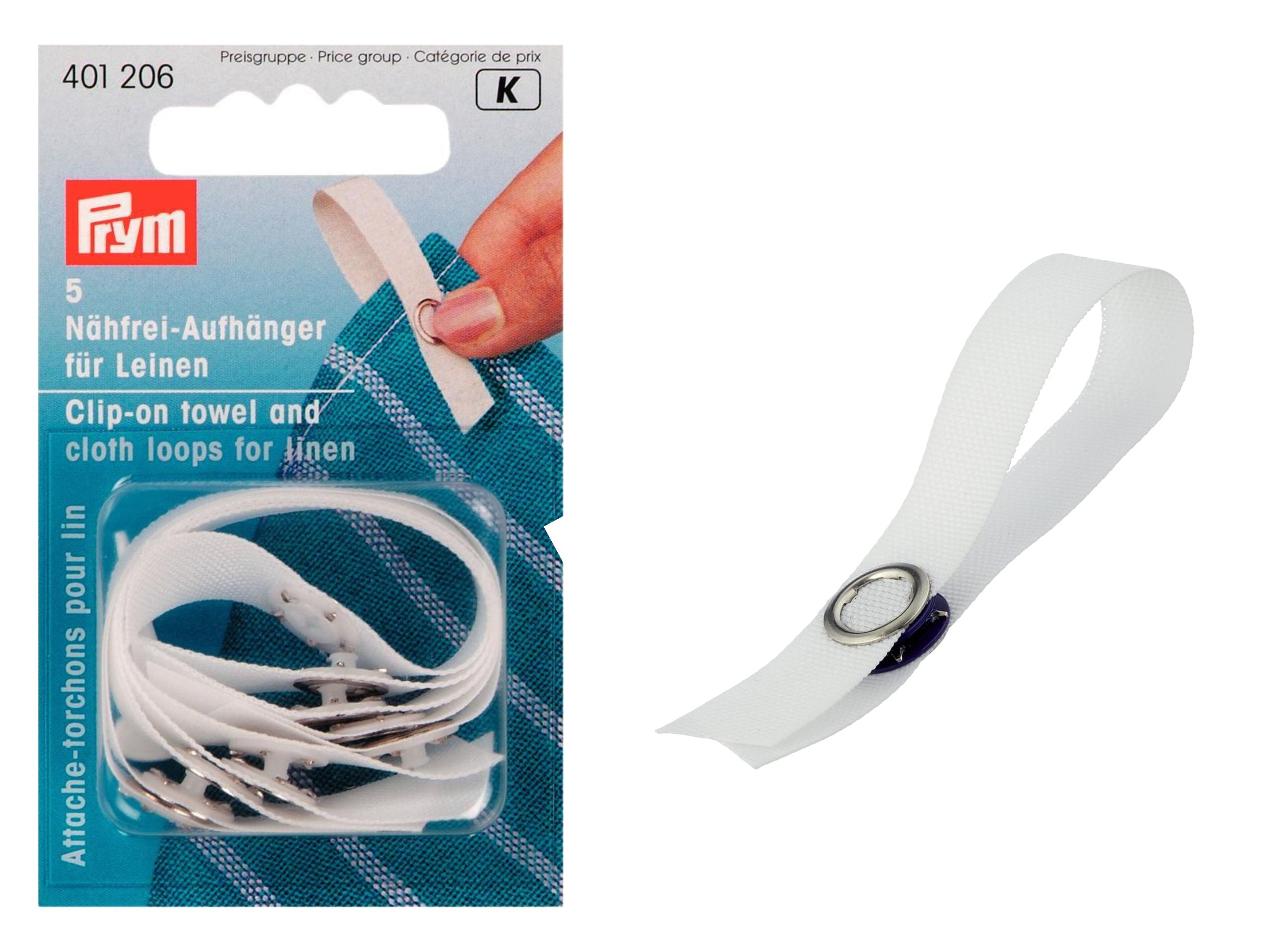 Kein Aufhänger am Handtuch? Die nähfreien Aufhänger von PRYM helfen schnell. Mit einem Knopfdruck ist der Aufhänger befestigt und das Handtuch oder Küchenhandtuch hängt wieder am Haken. Die weißen Bänder aus 100% Polyester sind mit einem Druckknopf versehen. Für Frottee und Leinen, Anbringung ohne Nähen. Waschbeständig bis 60 Grad. 5 Stück. I