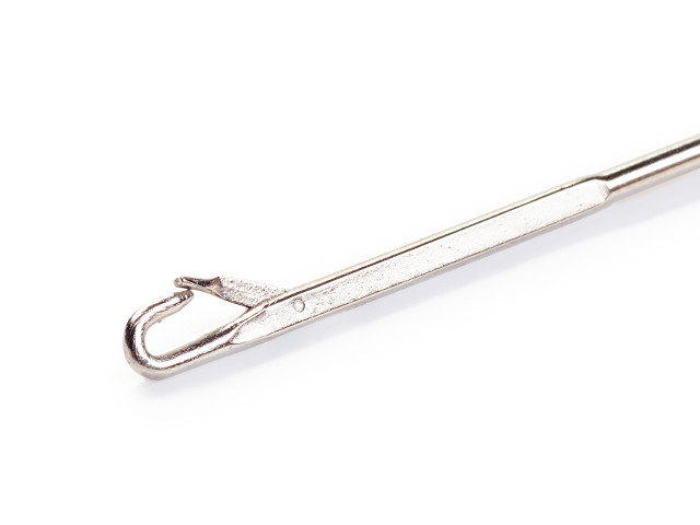 Praktische Wendenadel mit Öse und Verschluß Häkchen. Zum Wenden von Stoffstreifen (z.B. für Spaghettiträger) oder zum Durchziehen von z.B. Kordeln