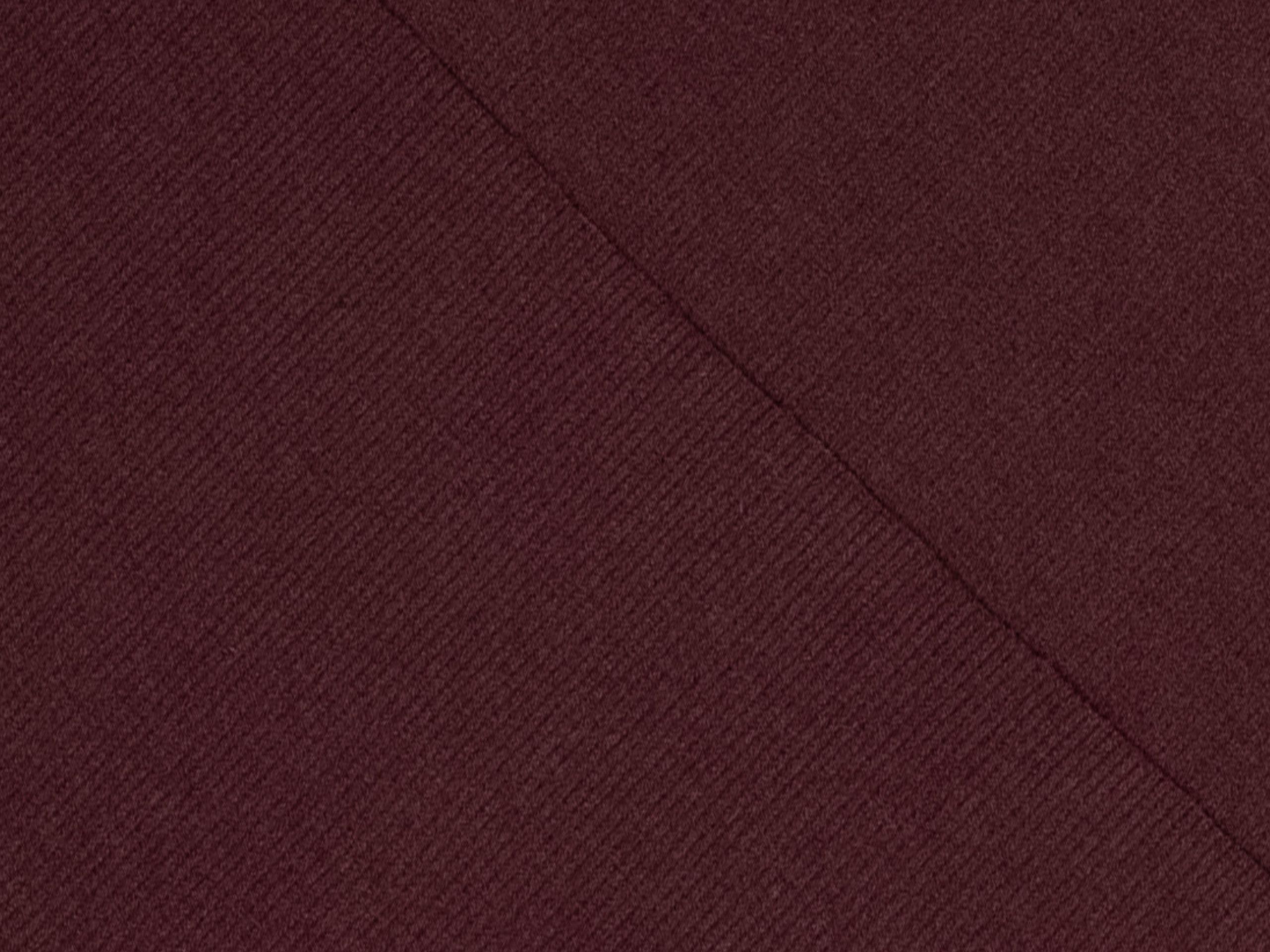 Tolle Bündchenware mit sichtbaren Rippen, aus der Fibre Mood Collection. In dunklem Aubergine. Ideal für Bund, Ausschnitt oder Ärmelabschluss. Schlauchware 55 cm, großzüge Endbreite von 110 cm. 95% Baumwolle, 5% Elasthan, 294 gr/m².